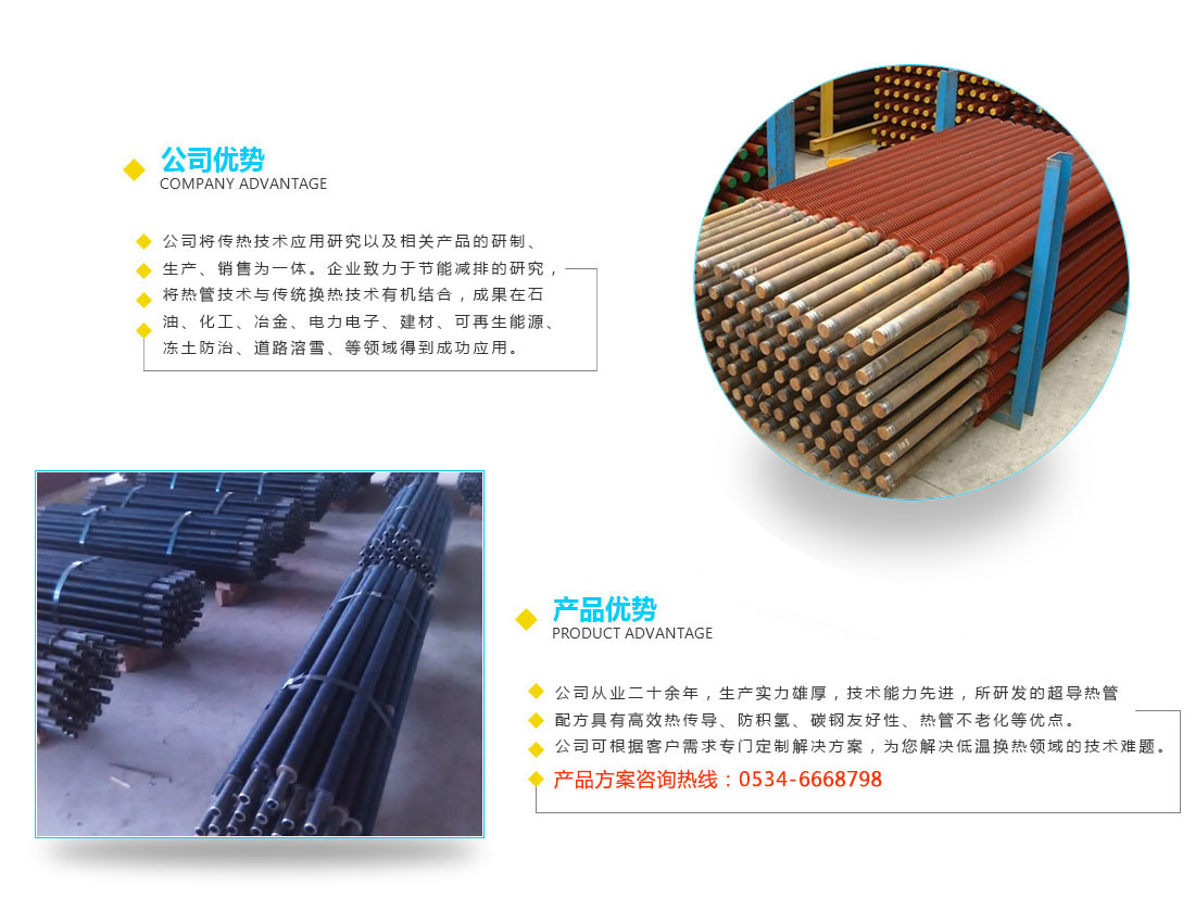 樂(lè)陵新華節(jié)能設(shè)備有限公司位于魯西平原山東省樂(lè)陵市,西南距德州市政府駐地110公里,南距省會(huì)濟(jì)南118公里,北距首都北京328公里,交通便利。公司由多位在工業(yè)余熱利用,高效傳熱領(lǐng) 域工作多 年的技術(shù)人員組建而成。公司研發(fā)的超導(dǎo)熱管配方具有高效熱傳導(dǎo)、防積氫、碳鋼友好性、熱管不老化等優(yōu)點(diǎn)。我公司可根據(jù) 客戶需求專門定制解決方案,為你解決低溫?fù)Q熱領(lǐng)域的技術(shù)難題。